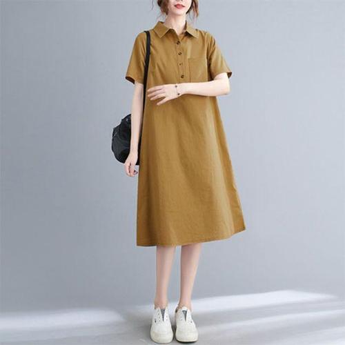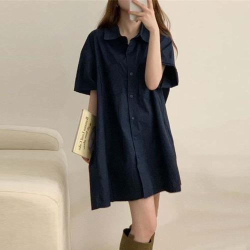 [셀럽하우스]여성 ZJYL0705 카라 루즈핏 원피스 반팔 무지 린넨 단추 코튼