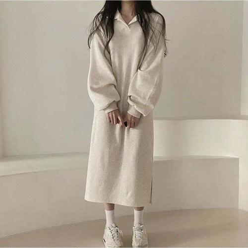 [셀럽하우스]여성 VUOR8436 겨울 편한 데일리 루즈핏 면 카라 롱 원피스