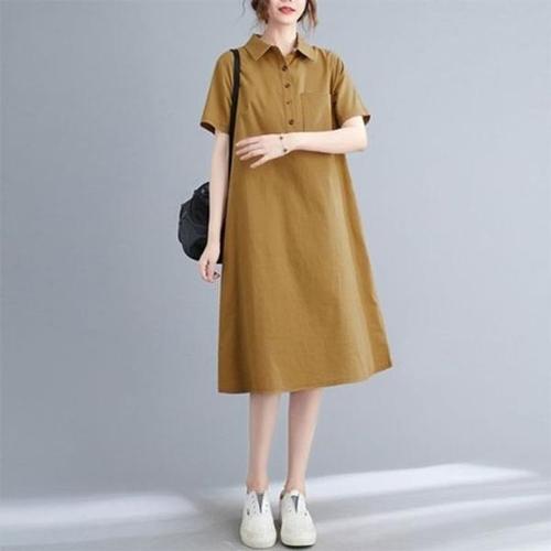 [엄지척]여성 여름 린넨 면 반팔 카라 단추 셔츠원피스 2컬러_19913261_667501