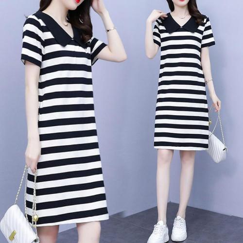 [에이비에프지]세일러카라포인트 스트라이프반팔롱면원피스 APY5HO33G