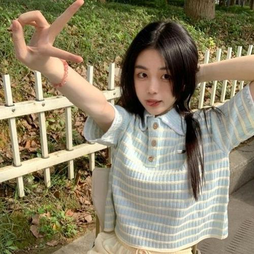 [엄지척]여성 여름 예쁜 시원한 단가라 큐티 카라 반팔티셔츠_19615130_667501