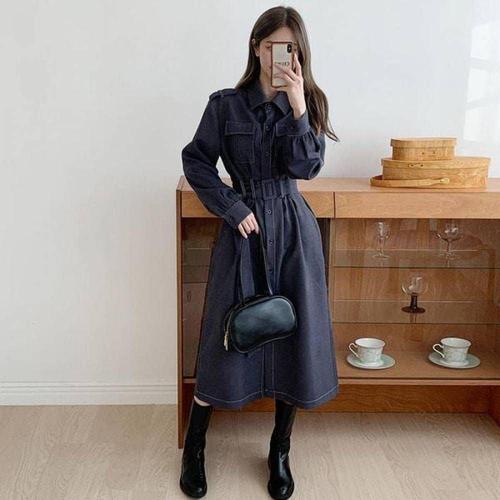 트위드 딧르만 원피스 셔츠 여성 롱니트 카라 WFKOIQM