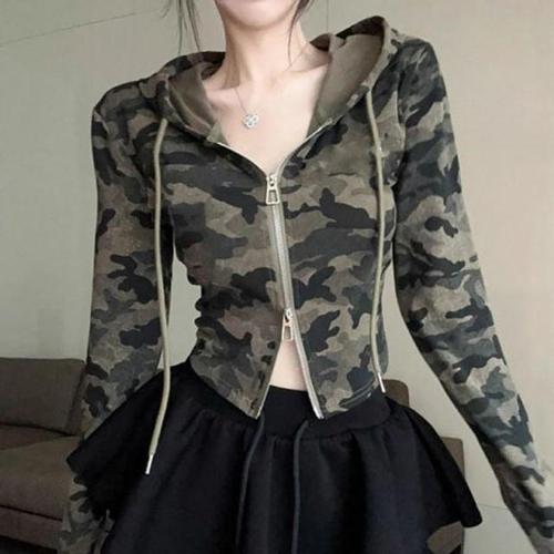 [옷자락] 여성 일상 스트리트 카모 기모 티셔츠