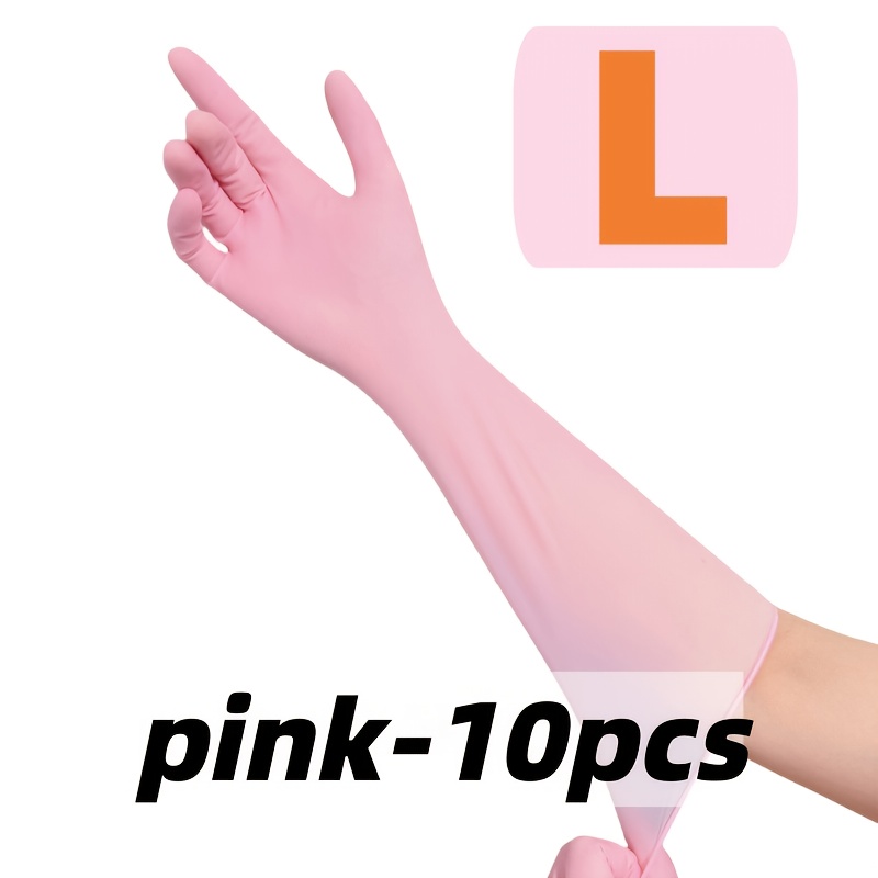 TEMU 10개입 초장형 핑크 16인치 나이트릴 장갑, 설거지 장갑, 연장 및 두꺼운 재사용 가능, 설거지, 청소, 욕실, 가정용 및 주방용, 휴일 선물
