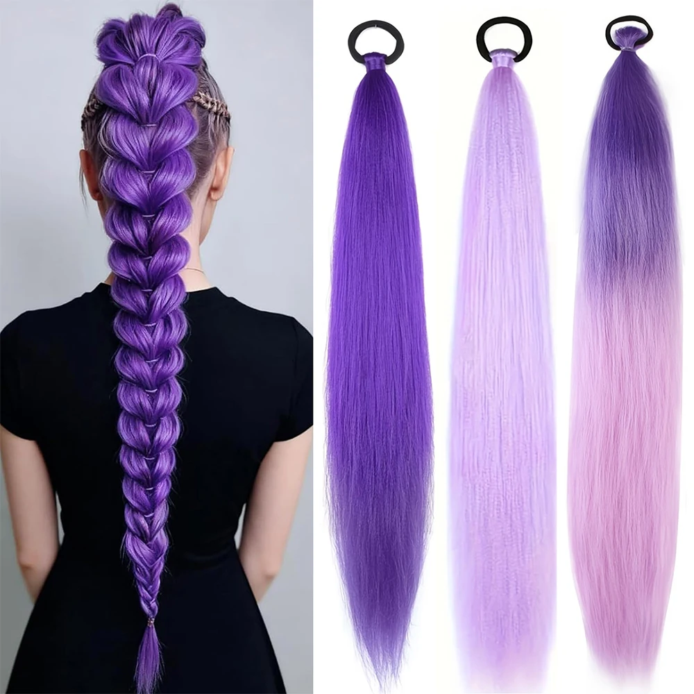 2개입 합성 퍼플 브레이딩 헤어 롱 스트레이트 DIY 브레이디드 포니테일 헤어피스 여성용 헤어 코스프레 파티 일상용 축제용