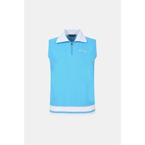 [테일러메이드]여성 로고 자가드 변형 카라 민소매 니트 TWSRM6222-199