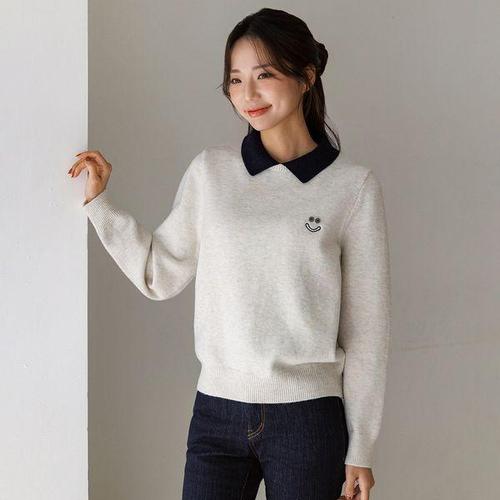 [더블유피비지]스마일리 배색 카라 소프트 니트_2color