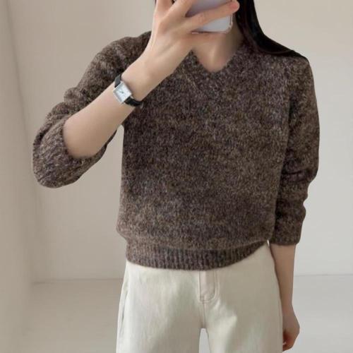 [미라클세븐]여성용 브이넥 보카시 긴팔 니트 울혼합 무지컬러