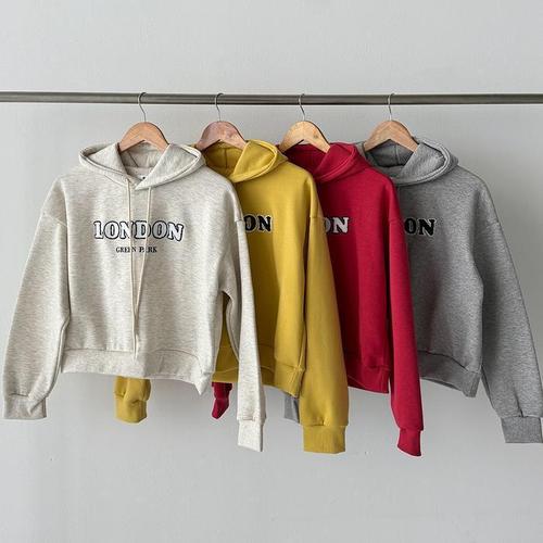 옷자락 / 여성용 크롭 기모 후드티셔츠 뽀글이 자수 빨강색 티