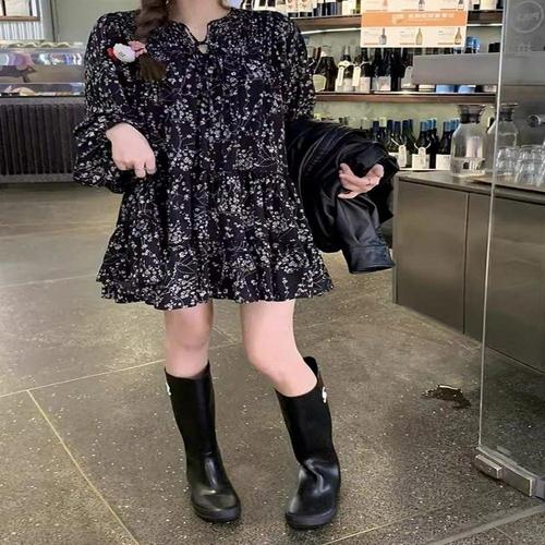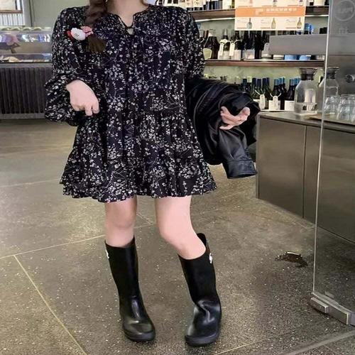 [셀럽하우스]여성 DQHG2460 봄 가을 플라워패턴 캉캉 데이트룩 미니원피스