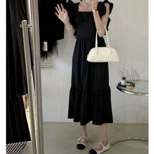 [셀럽하우스]스퀘어넥 WQLF0193 캉캉 원피스 페미닌 스트링 미니기장