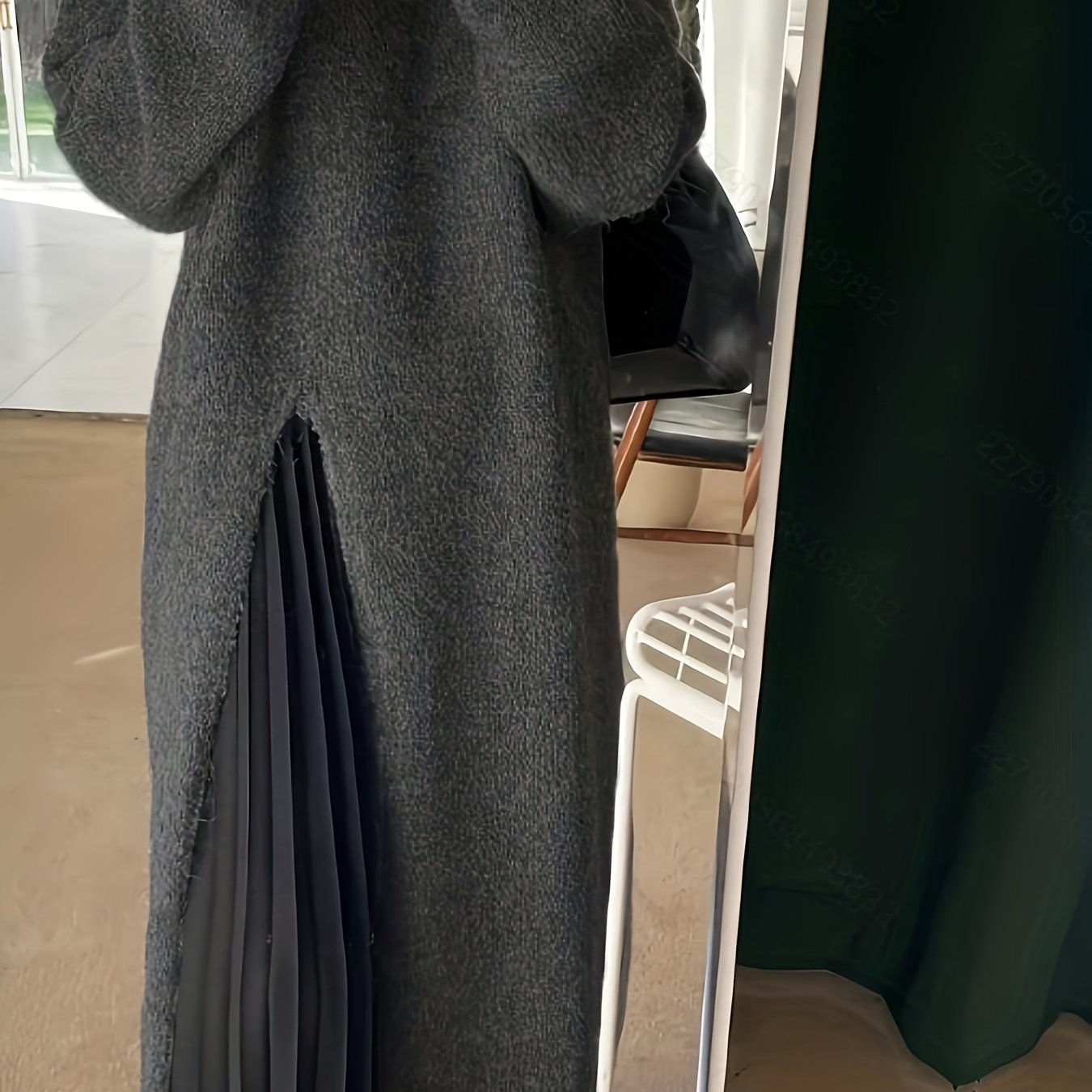 TEMU 플러스 사이즈 - 새로운 가을/겨울 단색 라운드넥 긴팔 드레스, 옆트임, 다재다능하고 젊음 넘치는 한국 스타일 미디 길이 디자인|민소매원피스|가을원피스|드레스