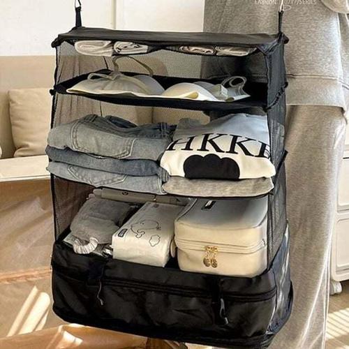 TEMU 여행용 정리 가방, 휴대용 걸이형 대용량 수납 파우치 - 접이식 캐리어 보관함, 벽걸이 패킹 정리함 (후크 포함), 가정 및 여행용으로 완벽