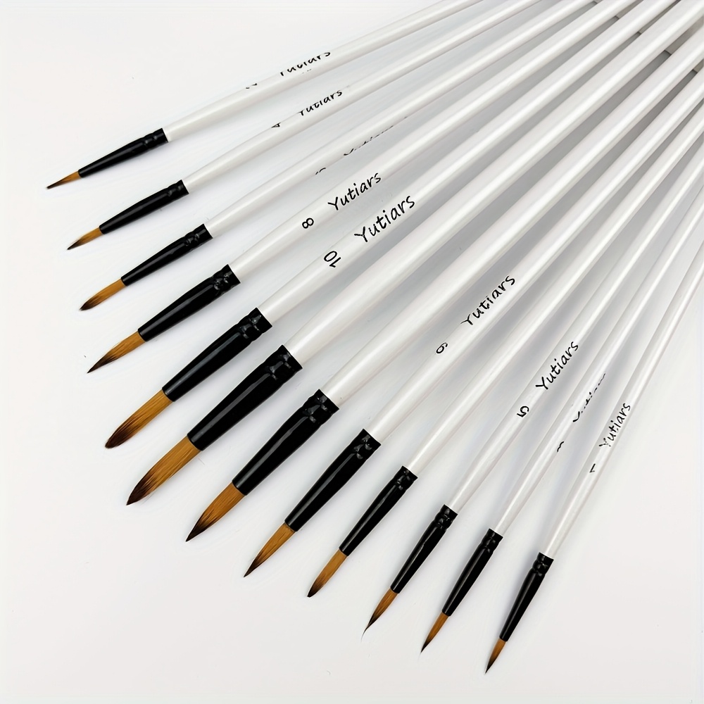 TEMU 아크릴 수채화 오일 구아쉬 얼굴 바디 페인팅용 소프트 합성 나일론 헤어 포인트 팁 라운드 브러시 세트 12개
