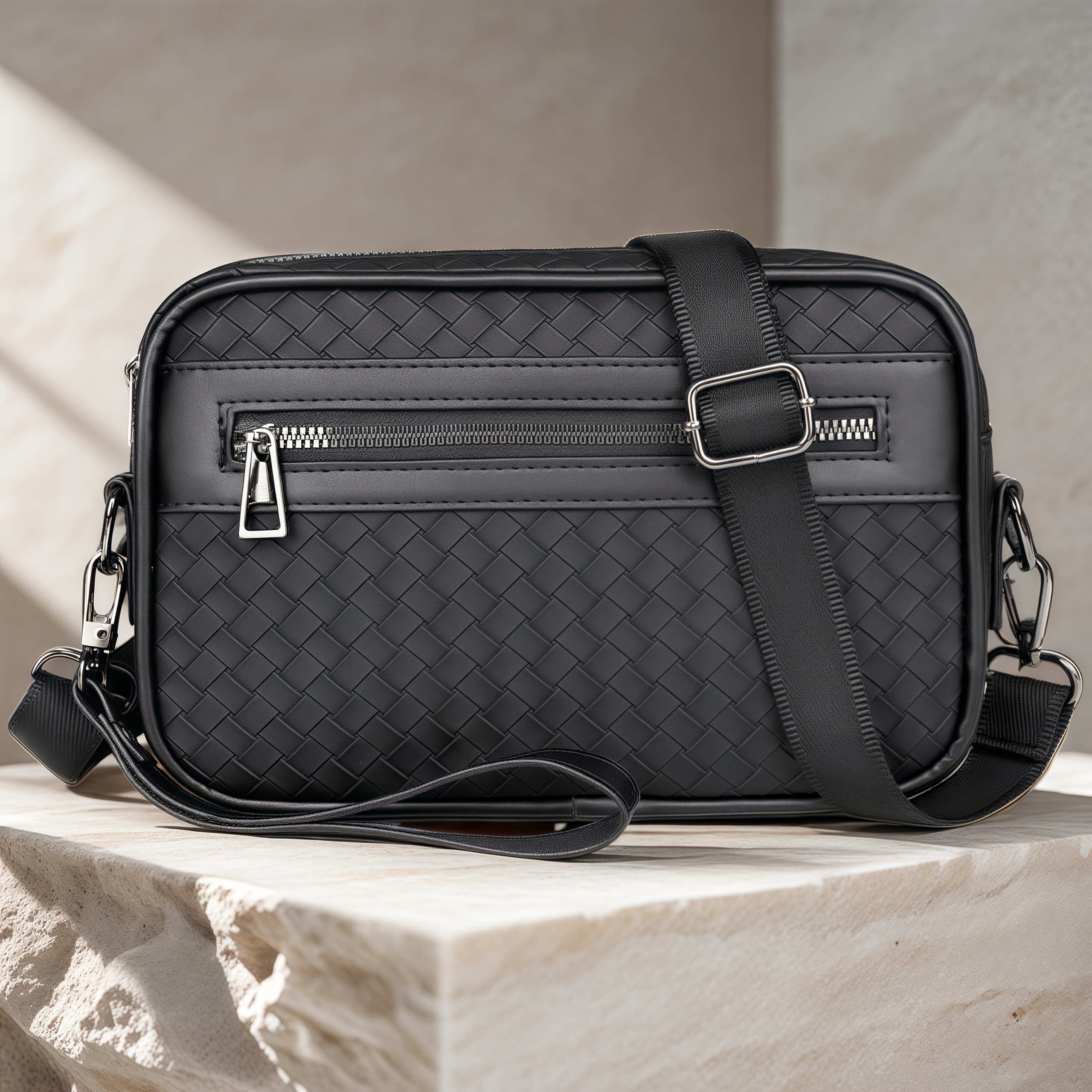 TEMU 남성용 스타일리시 블랙 크로스바디 백 "패션 스트리트 타이다" 프린트 - 가벼운 무게, 조절 가능한 스트랩, 다중 수납공간, 일상 출퇴근 및 외출에 완벽, 캐주얼 숄더백| 디자인|내구성 있는 지퍼 클로저|크로스백|남자가방