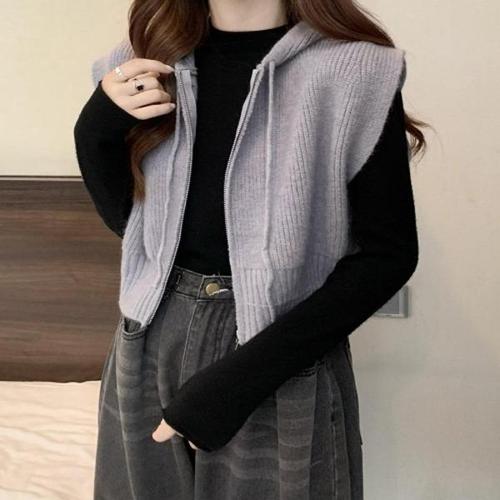 [엄지척]여성 3컬러 가을 겨울 캐주얼 니트 후드집업 조끼_19873990_667501
