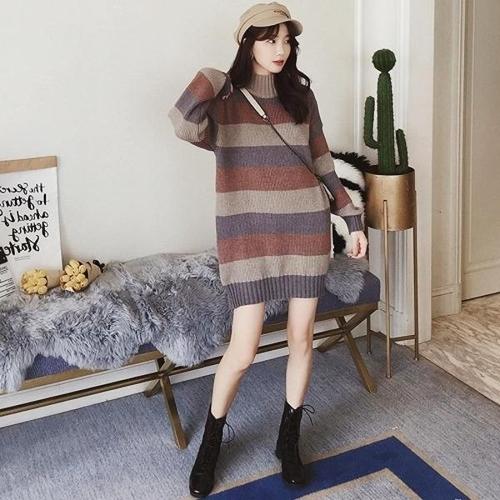 [엄지척]니트 롱 캐주얼원피스 배색 폴라 원피스_19913275_667501