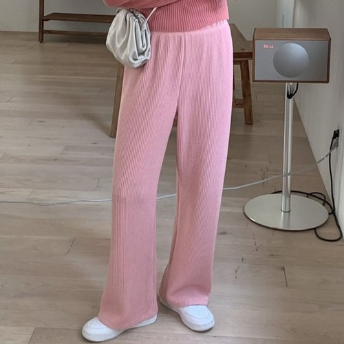 [파라노말샵]5색 캔디 골지 자수 밴딩 와이드 팬츠 통바지 (파라노