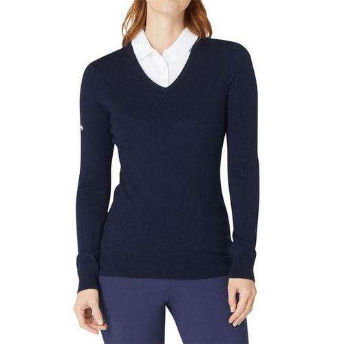 [캘러웨이]여성 골프웨어 브이넥 메리노 스웨터 네이비 2025FW
