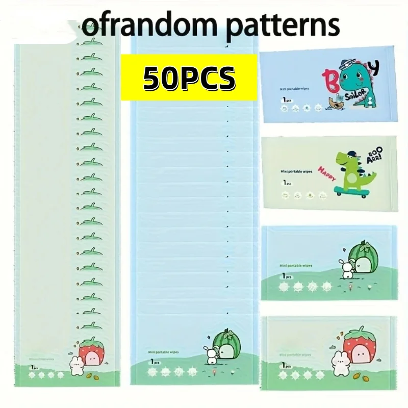 50/100/300Pcs 무작위 색상 휴대용 여행 물티슈 - 부직포 소재, 휴대하기 쉬운 캠핑 야외 위생 필수품, 만화 패턴 디자인 및 티슈 상자 포함, 하이킹, 피크닉, 여행, 재미있는 포장, 안전한 포장, 외출 필수품