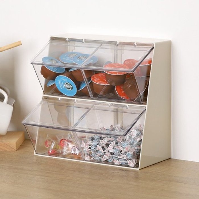 아크릴 직사각형 4칸 보관함 일반형 호환용 캡슐커피 티백 정리 뚜껑형 투명정리함