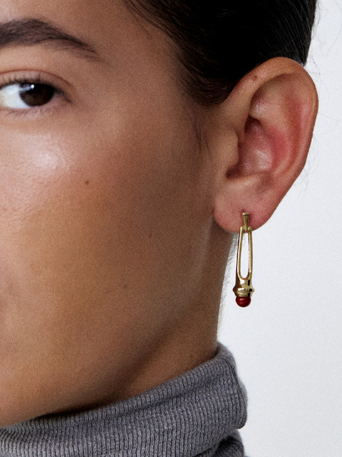 [에뜨리브] 자만옥 레드 커넬리언 천연 원석 이어링