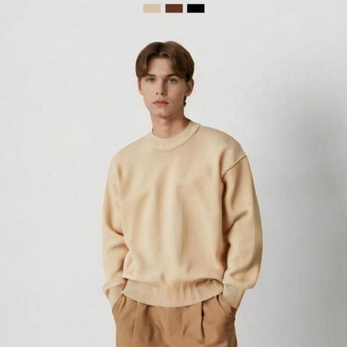 [셀러허브_여성트랜드패션]남성상의 겨울 라운드넥 상의 오버핏니트 커플니트 풀오버 남성 시밀러룩