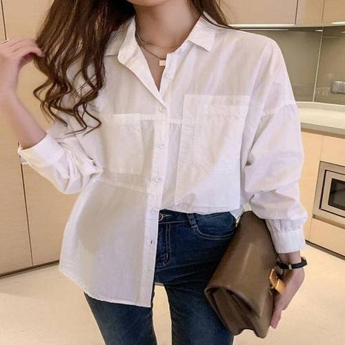 [셀러허브_여성트랜드패션]주머니 블라우스 셔츠 화이트 HL] 남방 루즈핏 커플룩