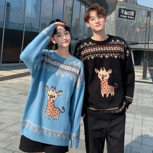 [셀러허브_여성트랜드패션]남성상의 겨울 라운드넥 상의 오버핏니트 커플니트 풀오버 남성 시밀러룩