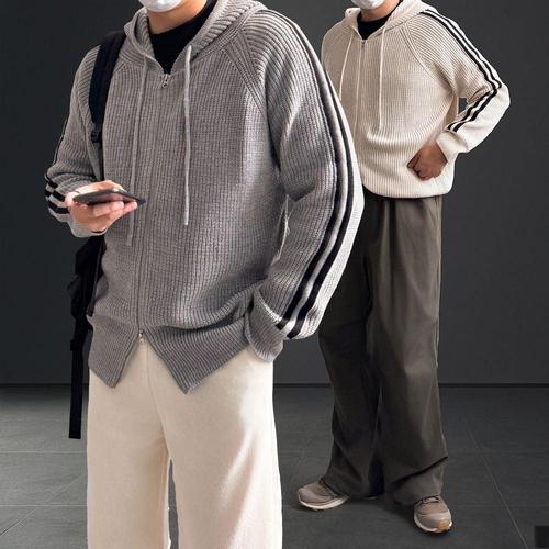 비비오 더블트랙 니트 후드집업 (4color) 커플 워셔블 하찌 집업 WFKO3KO
