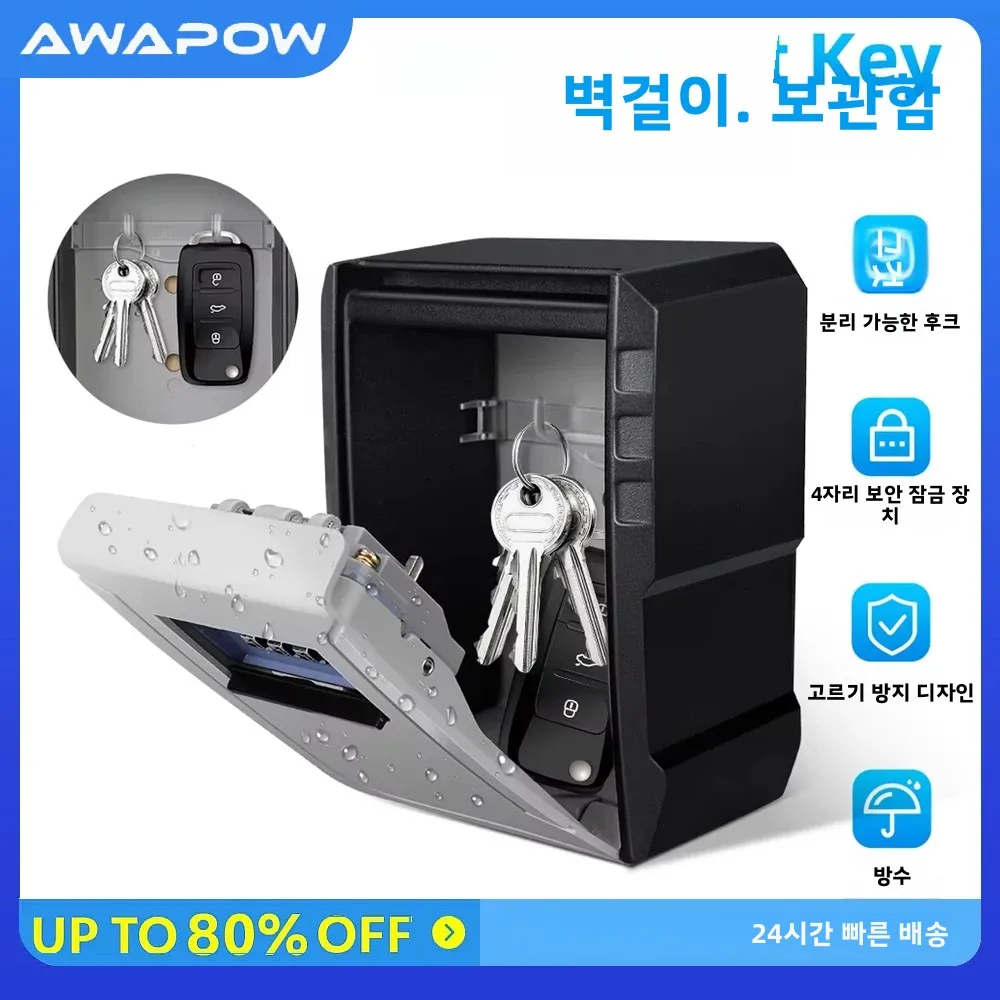 아워파우 메탈 비밀번호 키 박스 벽걸이형 4자리 비밀번호 잠금 보관함 방수 도난 방지 대용량 안전 키박스