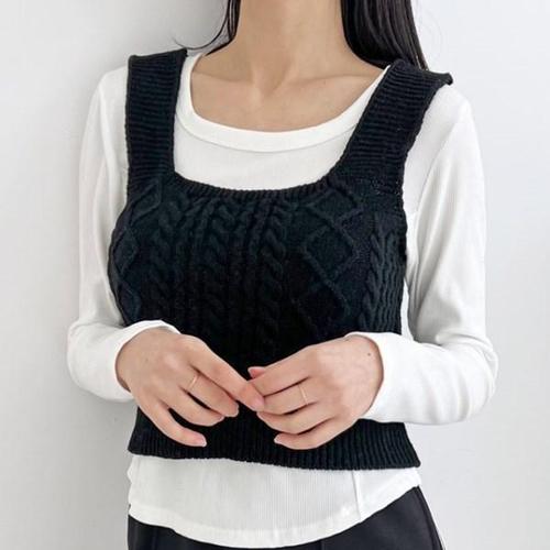 [옷자락] 여성 무지컬러 꽈배기 스퀘어넥 뷔스티에 조끼