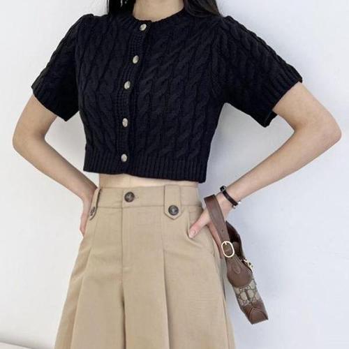 [다잇템][다잇템] 여자 U넥 무지컬러 롱슬리브 세미크롭 꽈배기 가디건_22888079_588872