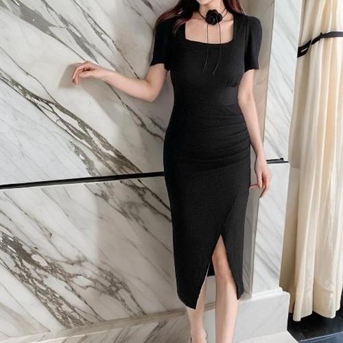 [다잇템][다잇템] 여자 잔주름 반소매 슬림 스퀘어넥 컷오프 원피스_20860186_588872