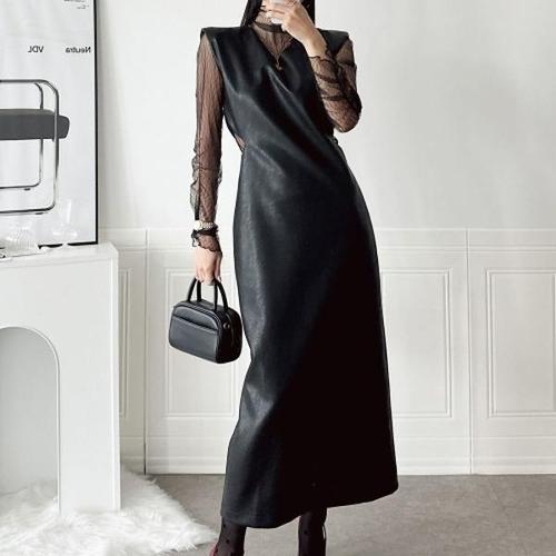 [다잇템][다잇템] 여자 슬리브리스 슬릿 홀리데이 컷오프 레더 롱원피스_19321487_588872