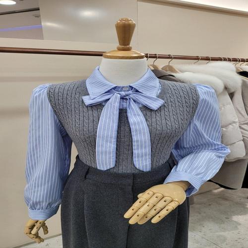 [케네스레이디]타이 셔츠 레이어드 니트 EKPOPK0300