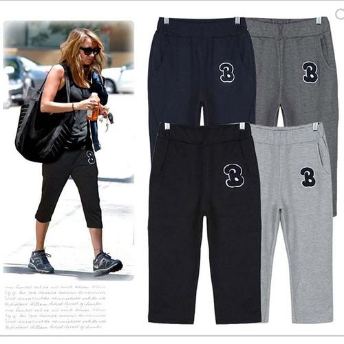 [셀럽하우스]여성 QVIX7737 여자 7부 B로고 트레이닝 팬츠 바지 캐주얼룩