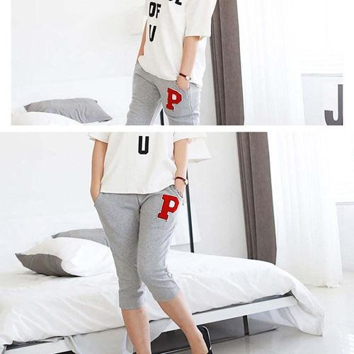 [셀럽하우스]여성 ASMD1396 여름 홈웨어 운동 P패치 7부 트레이닝 팬츠