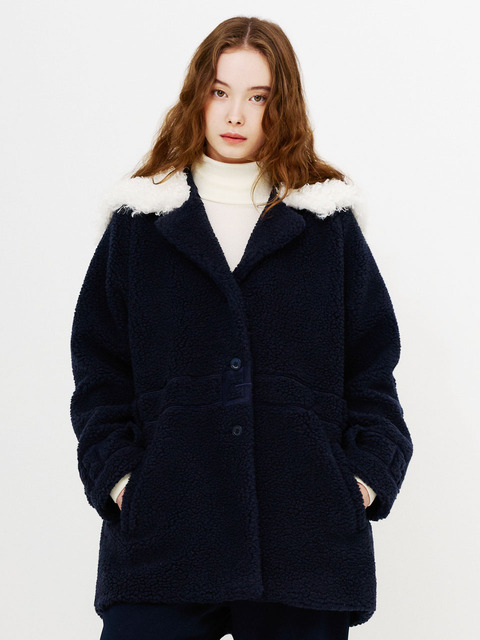 [더스튜디오케이] 밸트 자수 러 에코 퍼 코트 (네이비)