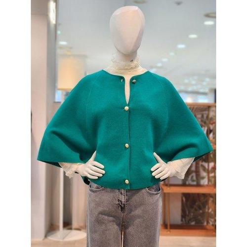 에쥬아 여성 모직 망토코트 금속 버튼 빈티지 케이프 망토
