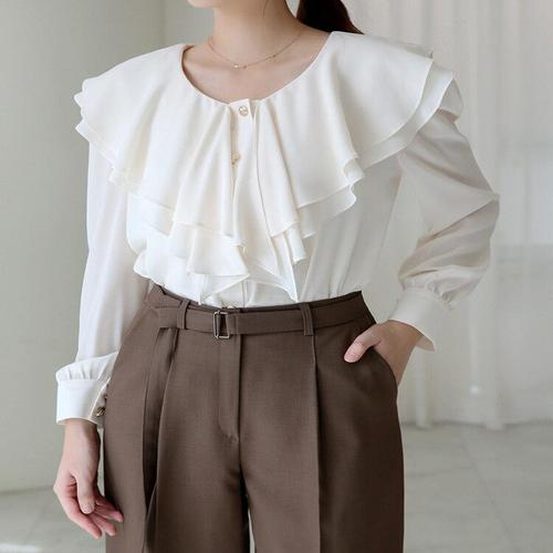 [스타일온미][스타일온미] 올레인 풀 셔링 레이어드 케이프 러플 블라우스