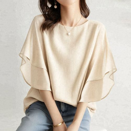 [쉬폰 케이프] 여름 블라우스 라운드넥 셔츠 반팔 오피스룩