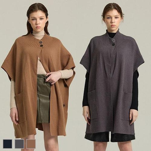 엘제이 캐시미어 트리플버튼 카라 케이프 판초 캐시미어100%