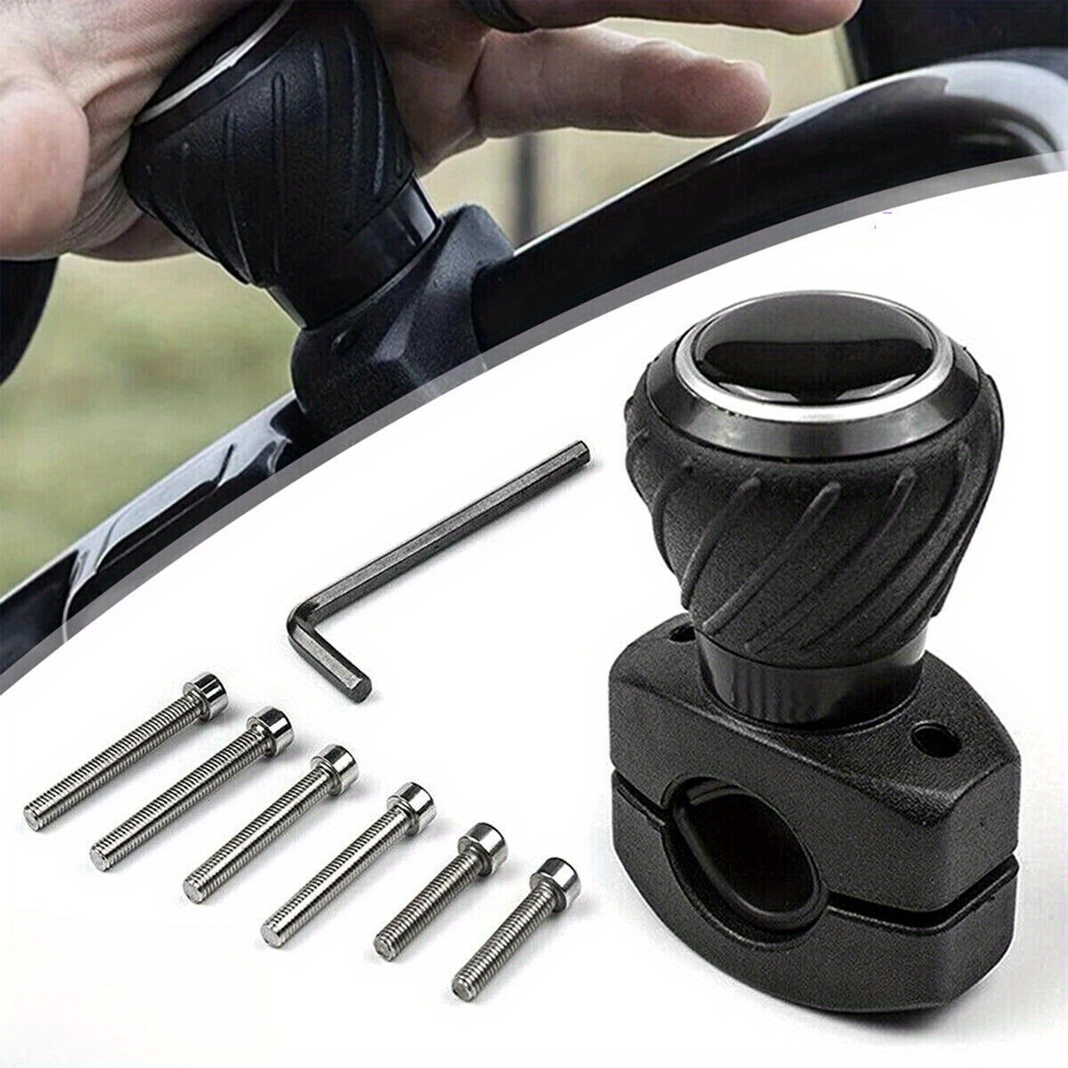 TEMU 빠른 설치, 쉬운 설치 파워 스티어링 휠 스피너 노브 - 자동차, 트럭 등에 적합 - 부드러운 회전 볼 핸들 어시스턴트, 블랙