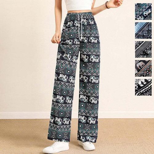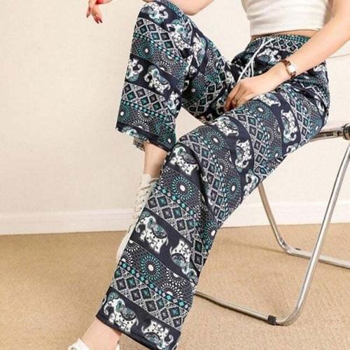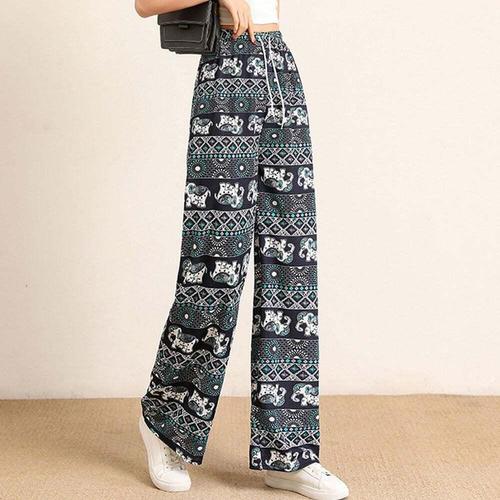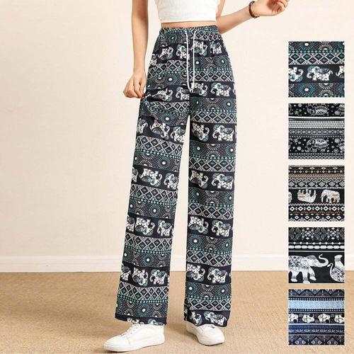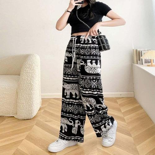 [셀럽하우스]이국적인 DUUK2768 코끼리 패턴 편한 허리밴딩 시원한 통바지