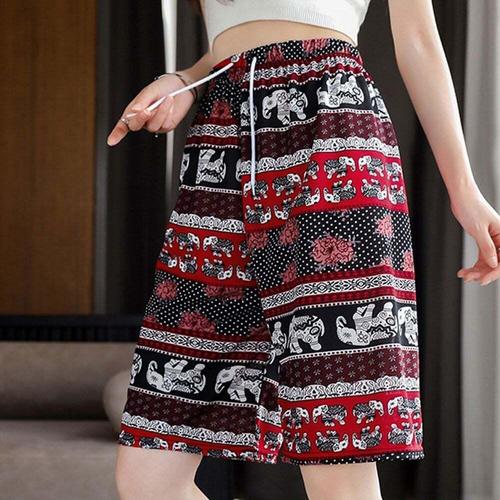 [셀럽하우스]여름 ICFZ0451 휴양지 코끼리 패턴 편한 통바지 시원한 반바지