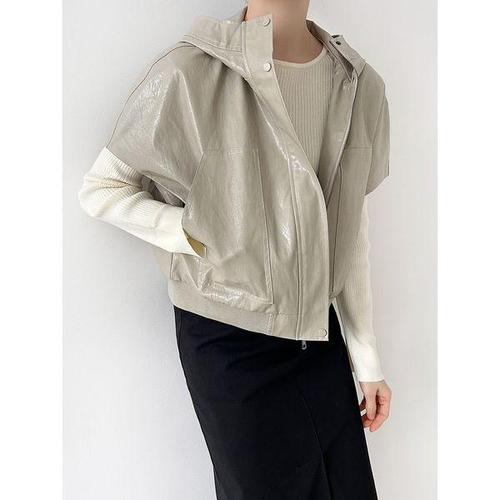 Willshela 여성 패션 포켓 그레이 프론트 지퍼 자켓 빈티지 옷깃 넥 긴 소매 여성 세련된 레이디 의상