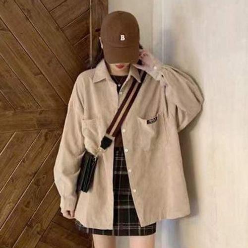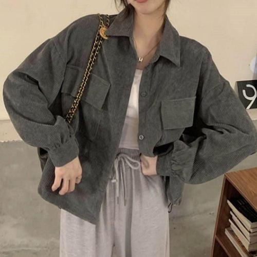 카라 남방 코듀로이 자켓 여자 셔츠 세미크롭 골덴 WFLQ89X