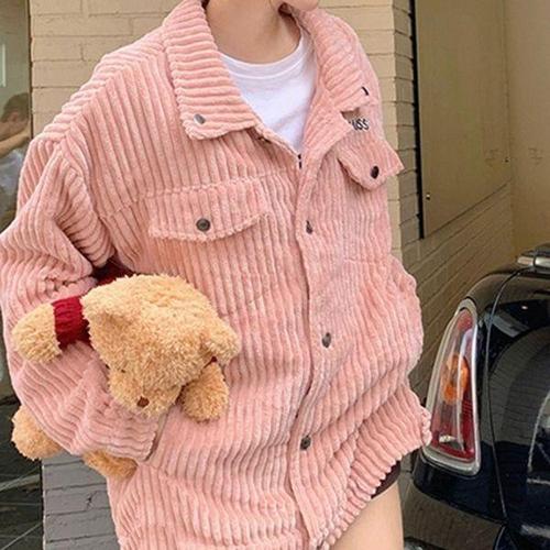 [에이치플러스몰]여성 골덴 루즈핏 자켓 코듀로이 점퍼 연핑크