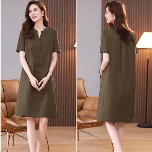상견례 단정한 여성 원피스 반팔 여름 무릎 기장 코디 WFKOCHJ